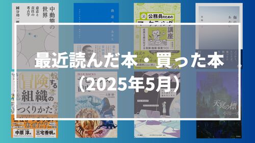 いろいろな本を読んで生きています。紙で読んだ本、電子書籍で読んだ本、オーディオブックで聞いた本と、あと買った本と。単に趣味の本もありますが、仕事に関係していたり考えたい問いがあって読む本もあるのでご紹介します。